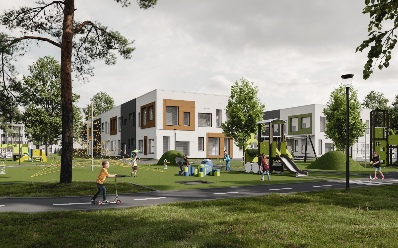 - Inženiertīklu izbūvi. Bērnudārza telpas būs aprīkotas ar mehānisko ventilācijas sistēmu un silto grīdu apkuri, kā rezultātā bērniem tiks nodrošināta komfortabla uzturēšanās bērnudārzā;